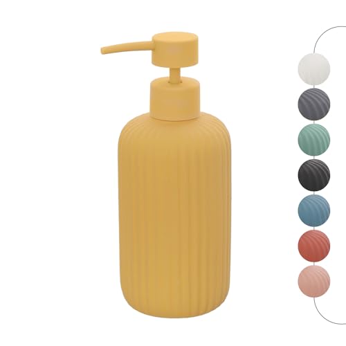 INBAGNO DISPENSER SAPONE GIALLO CANNETTATO IN CERAMICA SOFT TOUCH, RICARICABILE CON EROGATORE PUMP E CAPIENZA 330 ML, SPRING