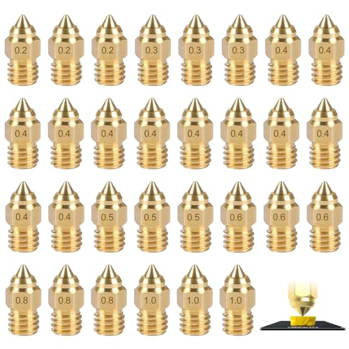 PCLAPORA 30 SET STAMPANTE 3D IN OTTONE UGELLI, 12 PEZZI DA 0,4 MM E 3 PEZZI DA 0,2 MM, 0,3 MM, 0,5 MM, 0,6 MM, 0,8 MM, 1,0 MM UGELLI, PER LE SERIE ENDER 3 V2, 5 PLUS, 6, CR-10