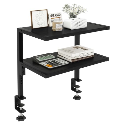 IBUYKE MENSOLA ORGANIZER DA SCRIVANIA CON MORSETTO, 32,8 CM, RIPIANI REGOLABILI SOPRA O SOTTO LA SCRIVANIA, 2 RIPIANI PER ACCESSORI DA SCRIVANIA, NERO, TMZ007B